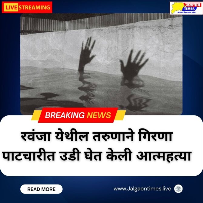 जळगाव टाइम्स (प्रतिनिधी) : एरंडोल तालुक्यातील रवंजा येथील एका तरुणाने गिरणा पाटचारीत मध्ये उडी घेऊन आत्महत्या केल्याची धक्कादायक घटना मंगळवारी दि. २१ जानेवारी रोजी सकाळी उघडकीस आली आहे. याप्रकरणी एरंडोल पोलीस स्टेशनला अकस्मात मृत्यूची नोंद करण्यात आली आहे.