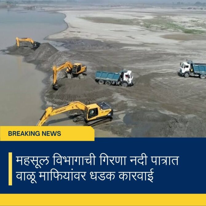 महसूल विभागाची गिरणा नदी पात्रात वाळू माफियांवरधडक कारवाई