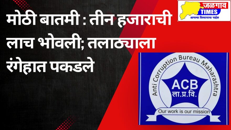 या संदर्भात अधिक माहिती अशी की, तक्रारदार हे जळगाव शहरातील रहिवासी असून त्यांनी कुसुंबा येथील तलाठी यांच्या कार्यालयात सातबारा उताऱ्यावर आई व भावाचे नाव लावण्यासाठी तसेच स्लॅब रजिस्टरवर नाव लावण्यासाठी अर्ज केला होता. दरम्यान सातबारा उताऱ्यावर नाव लावण्यासाठी तलाठी नितीन भोई यांनी तक्रार यांच्याकडे सुरुवातीला ५ हजार रुपयांची मागणी केली. दरम्यान तडजोड अंती अखेर ३ हजार रूपये देण्याचे ठरले. या अनुषंगाने तक्रारदार यांनी जळगाव येथील लाच लुचपत विभागाला तक्रार केली. त्यानुसार पडताळणीसाठी पथकाने मंगळवारी ७ जानेवारी रोजी दुपारी ४ वाजेच्या सुपारास ३ हजार रुपयांची लाच घेतांना तलाठी नितीन भोई याला रंगेहात पकडले. दरम्यान या संदर्भात एमआयडीसी पोलीस ठाण्यात गुन्हा दाखल करण्याचे काम सुरू होते. या कारवाईमुळे महसूल विभागात मोठी खळबळ उडाली आहे.