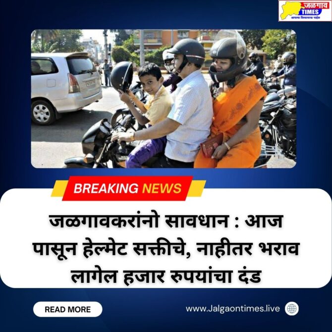 जळगावकरांनो सावधान : आजपासून हेल्मेट सक्तीचे, नाहीतर भराव लागेल हजार रुपयांचा दंड